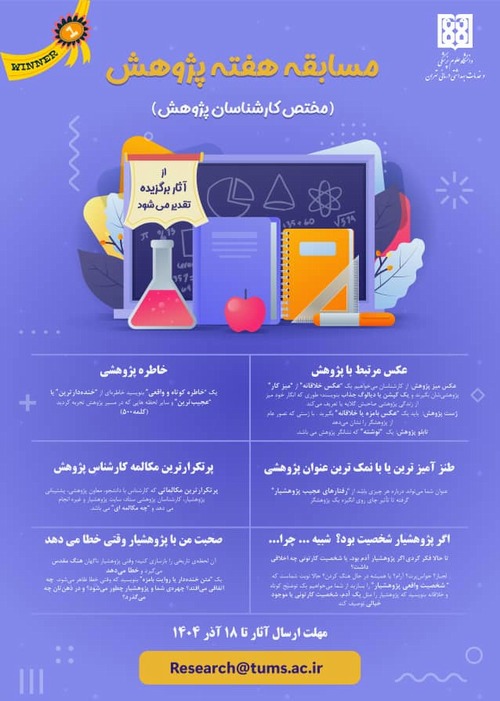 معاونت تحقیقات و فناوری دانشگاه علوم پزشکی تهران با همکاری مرکز پژوهش‌های علمی و فناوری دانشجویان، بزرگداشت هفته پژوهش و فناوری را 24 آذر ماه برگزار می کند.